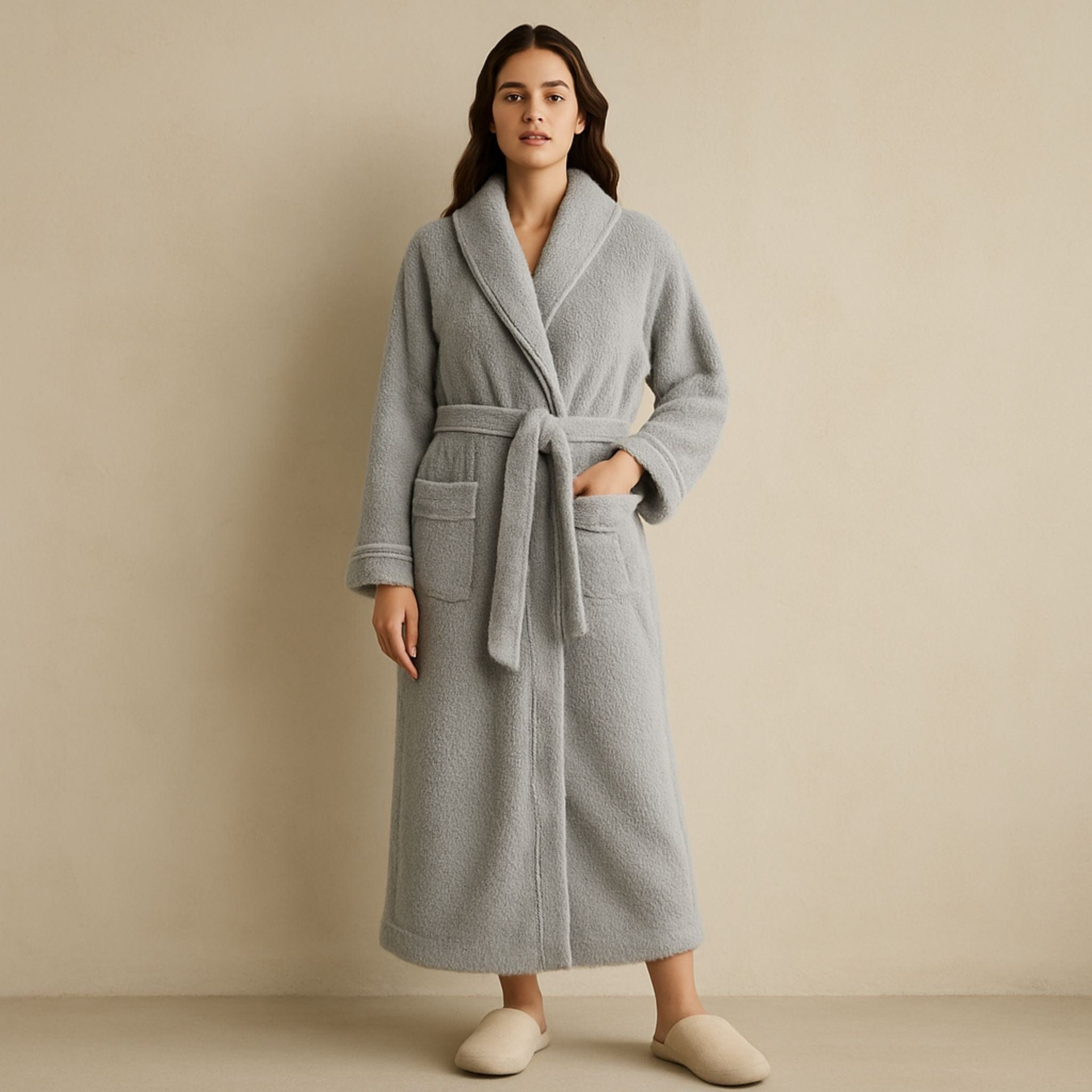 Enveloppez-vous de douceur avec ce peignoir polaire femme long jusqu’aux chevilles : flanelle super épaisse, col à revers, manches longues et coupe enveloppante. Léger mais chaud, il offre un confort cocooning immédiat après la douche ou pour des soirées détentes.