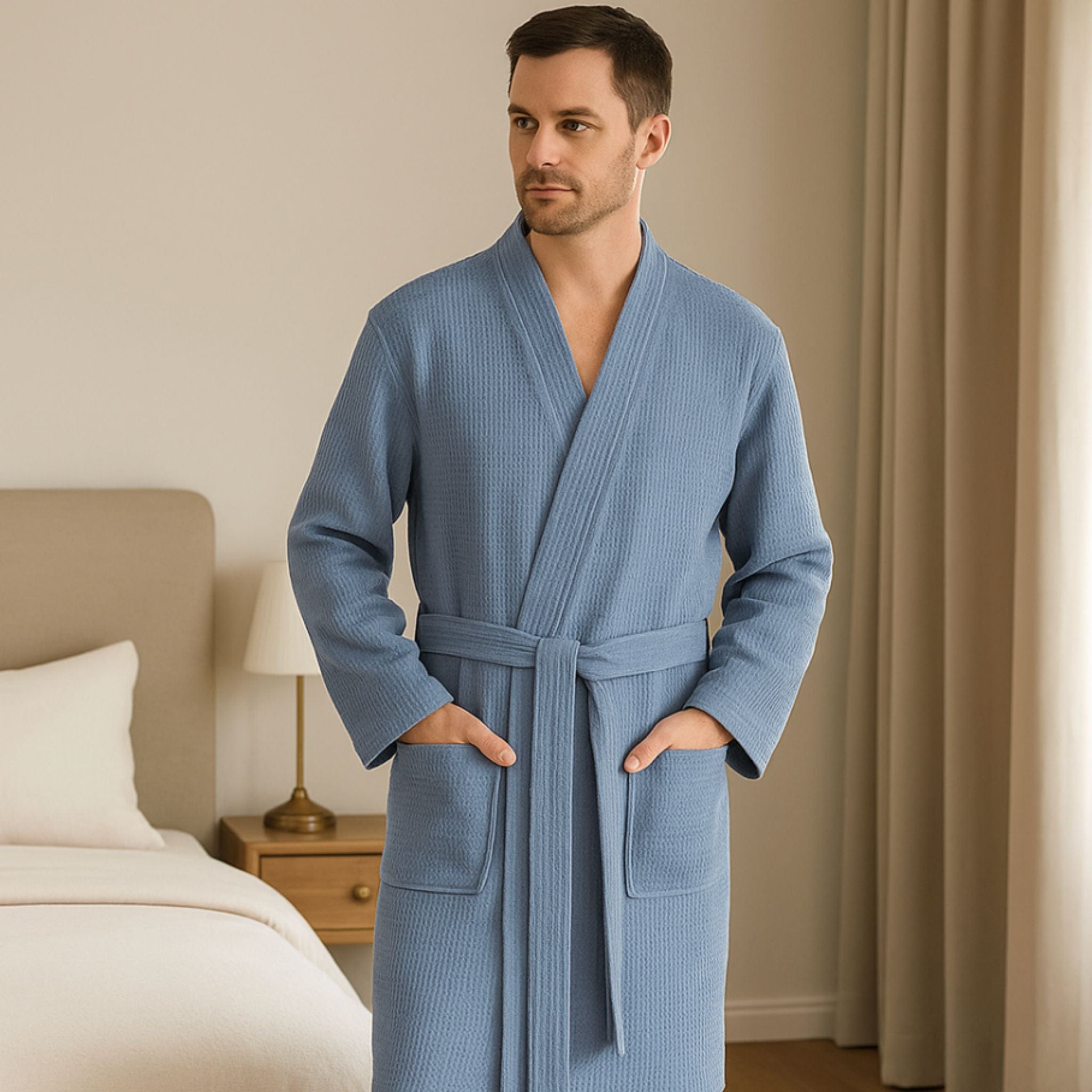 Ce peignoir homme nid d’abeille combine praticité et élégance. Léger et respirant, il sèche rapidement et reste confortable même après plusieurs lavages. Que ce soit pour un usage domestique, hôtelier ou spa, il répond à toutes les attentes.