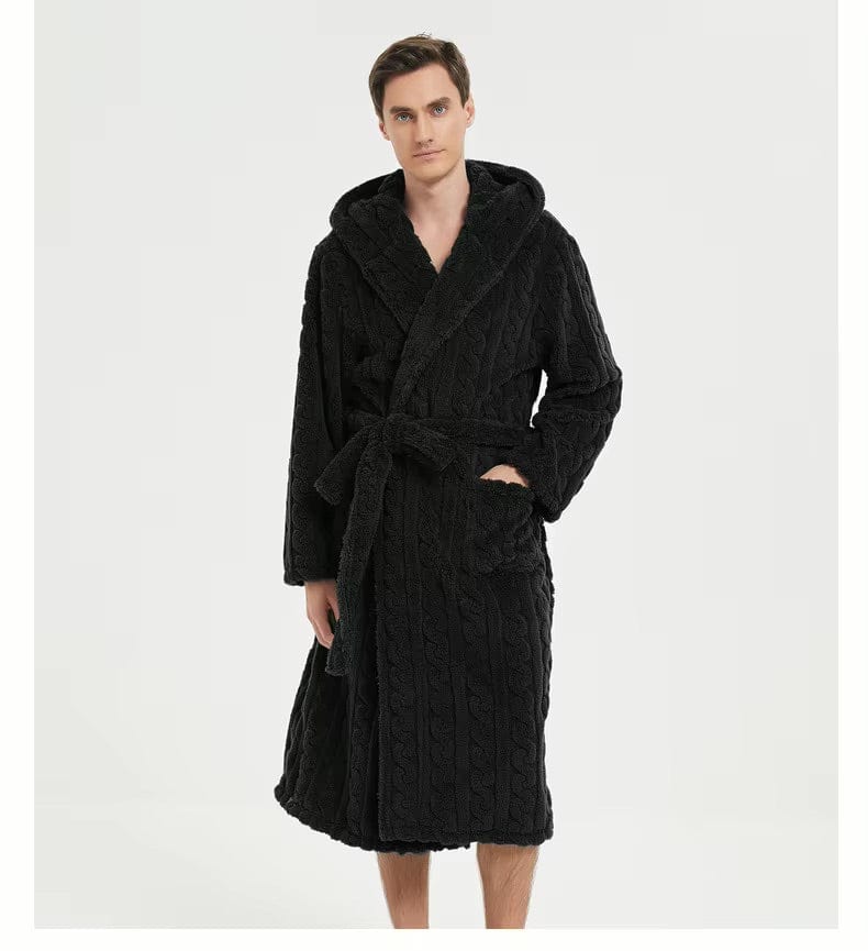 Peignoir Homme Polaire à Capuche en velours jacquard épais