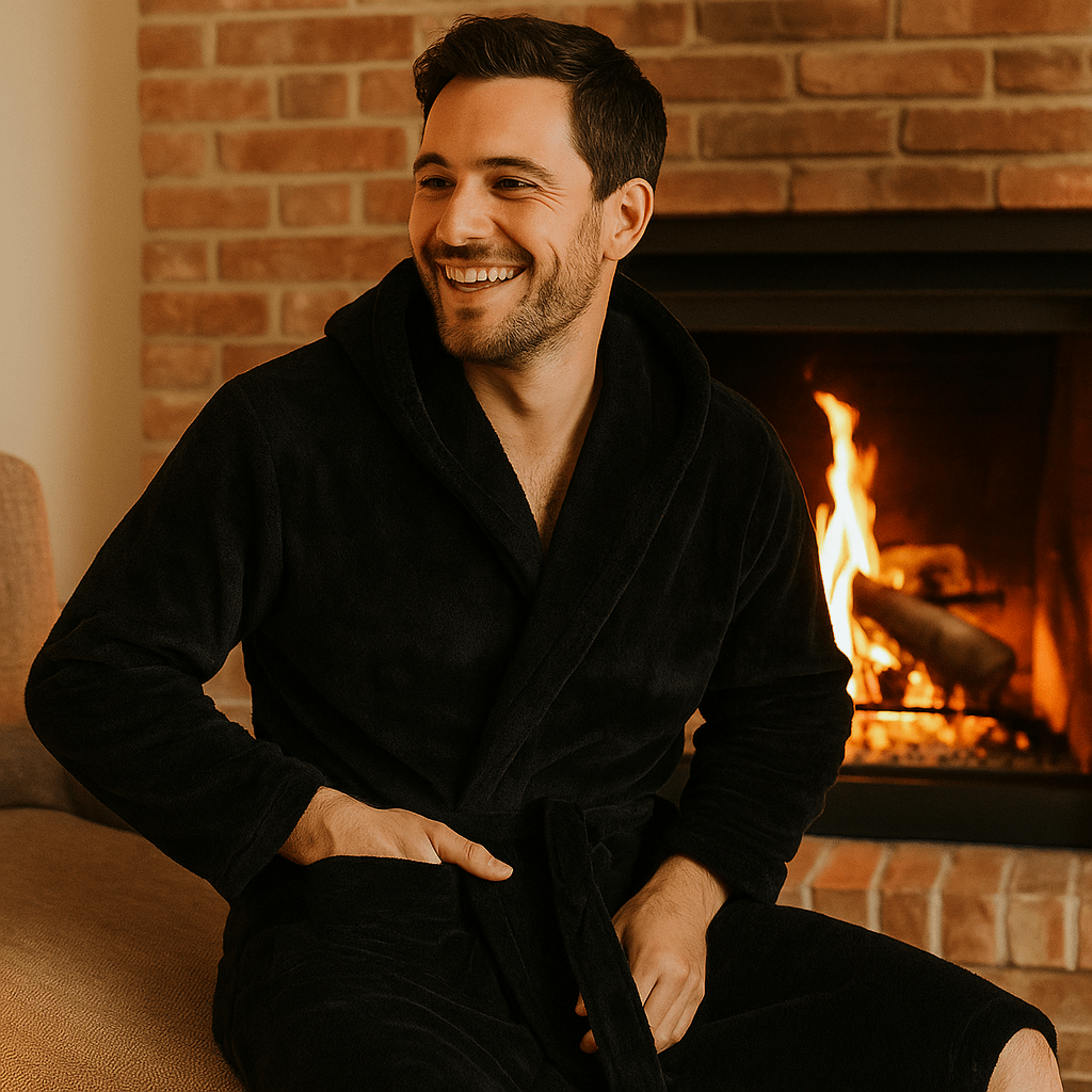 "Peignoir homme élégant et confortable. La coupe est parfaite, et le tissu est vraiment agréable. Je recommande sans hésiter."
